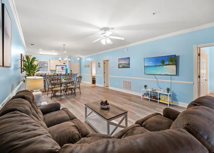 This accommodation is within 5 km of Myrtle Beach International airport and 4.3 km from such cultural points of interest as the Hollywood Wax Museum. The Ripley's Aquarium of Myrtle Beach is nestled about a 15-minute ride from the holiday home, and the mini-Disney-like Broadway at the Beach Outdoor Mall is approximately a 20-minute drive away. For sports enthusiasts, Family Friendly 2Br Villa Myrtlewood Golf Resort is an ideal starting point to discover Myrtle Beach's athletic scene, with the miniature Dragon's Lair Fantasy Golf, situated 4 km away.